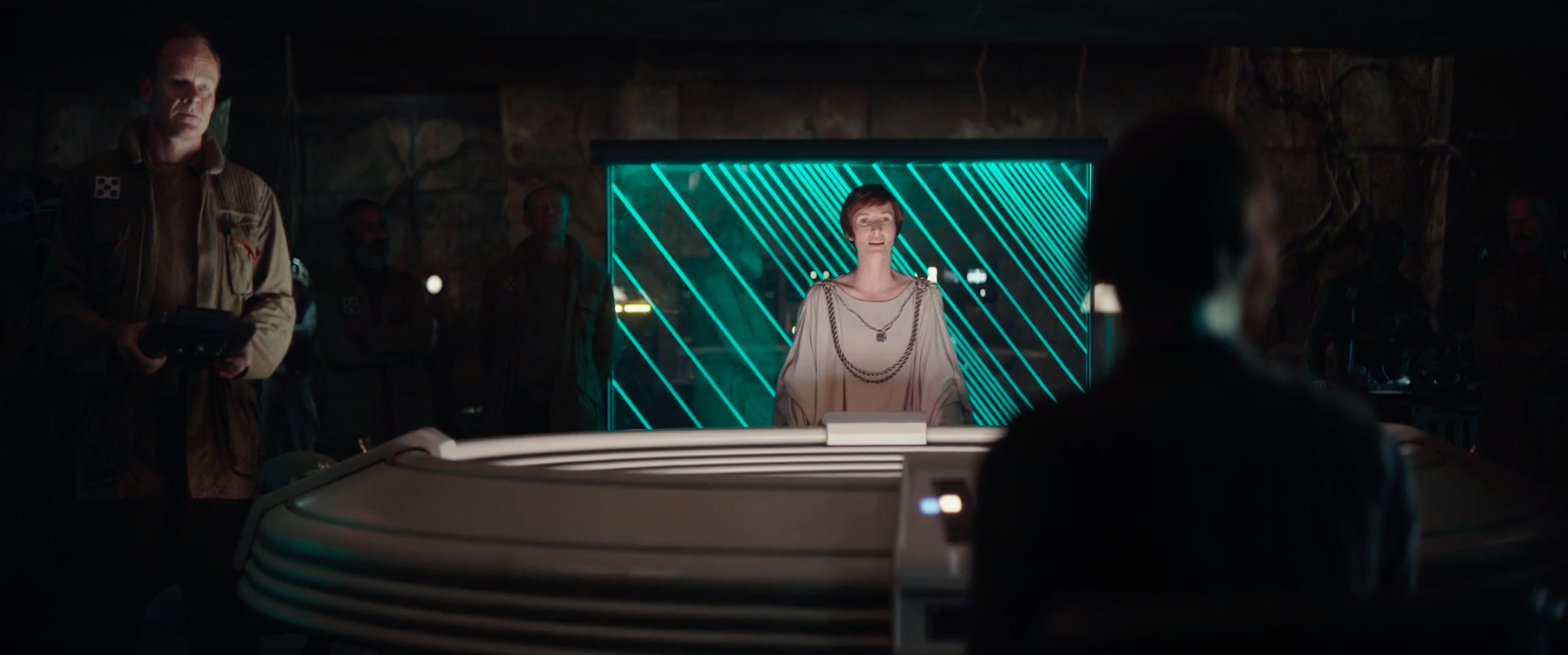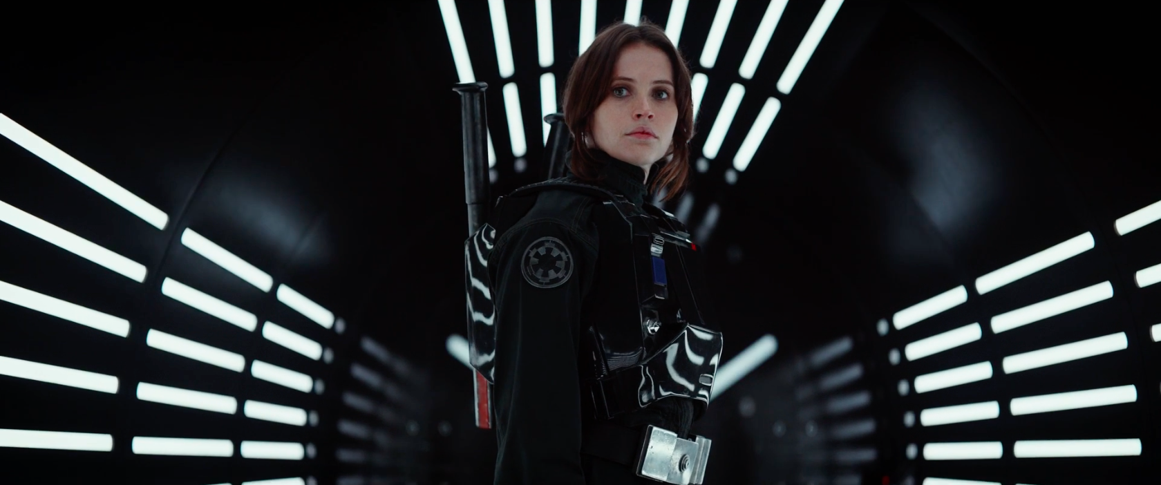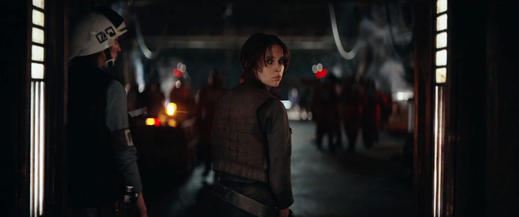 - “What will you become?” This is a great shot as it mirrors the first look at Jyn from earlier in the trailer. In this shot, though, she looks much more confident; like she is more her true self when donning an Imperial uniform.