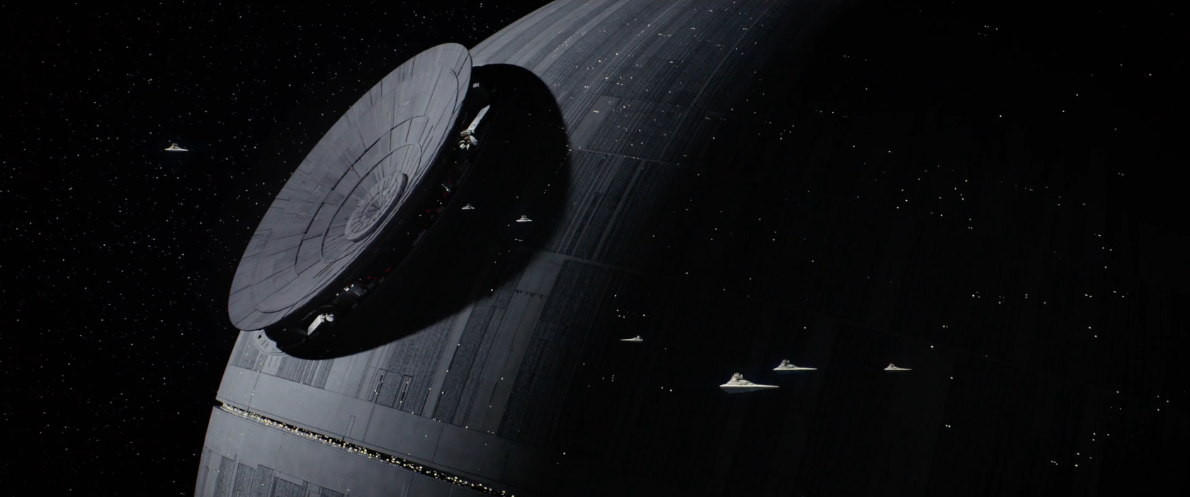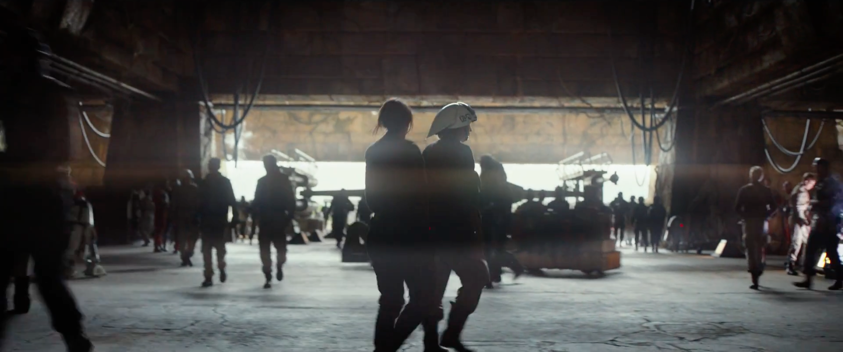 - It’s Yavin Base!!! This is part of what I mean it feels like a Star Wars movie, just different. The Force Awakens was supposed to look updated; it takes place 30 years in the future. However Rogue One takes place before A New Hope, but this Yavin Base looks nothing like the Yavin Base from Episode IV. The hangar in A New Hope felt closed and dark, this feels wide open. I like it.