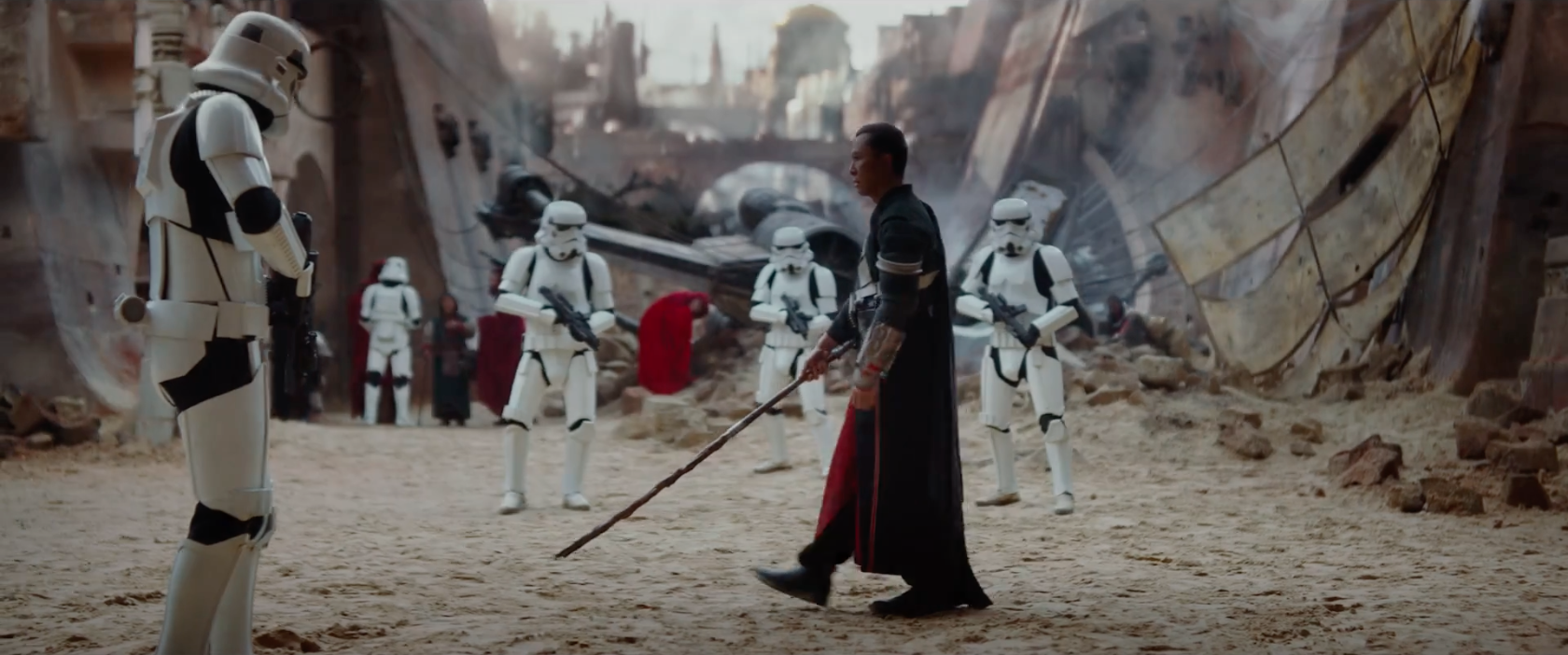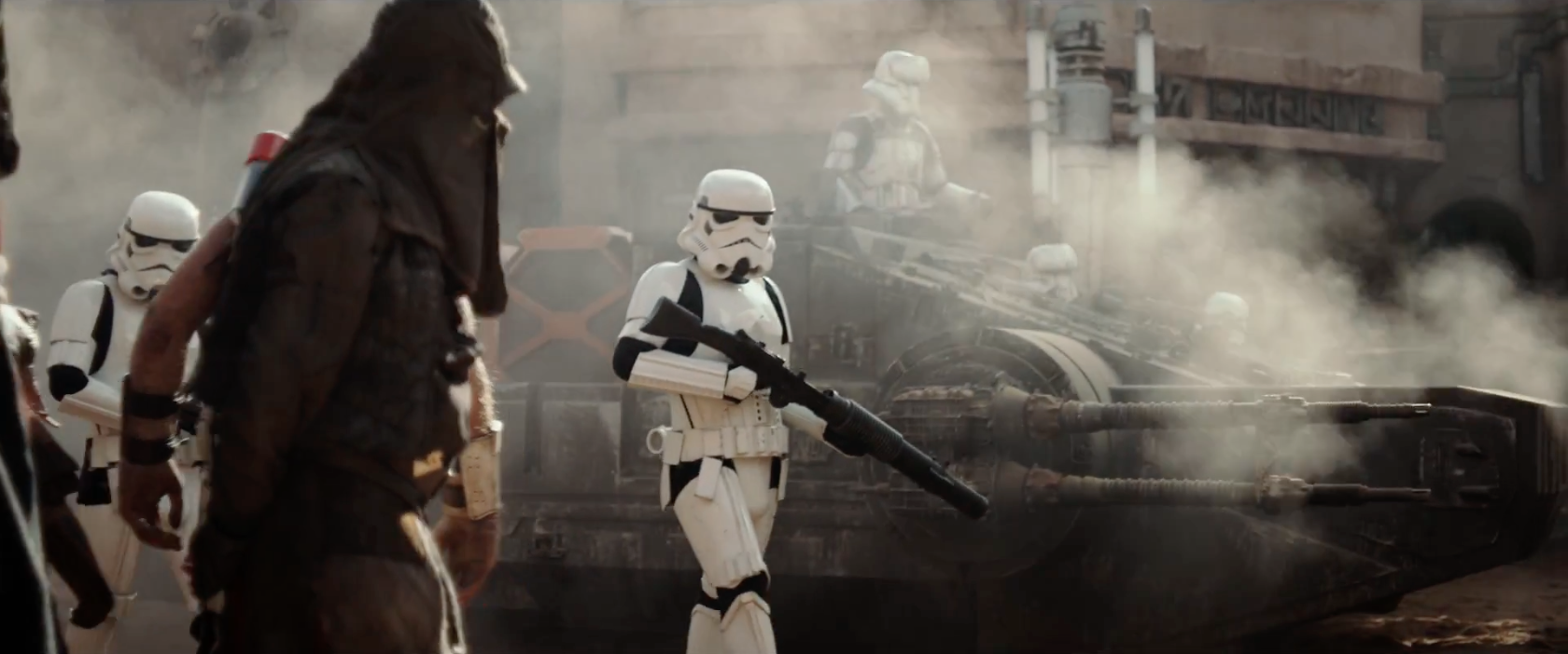 - This is another shot that feels like Star Wars but also different. My eyes say Stormtrooper, but the aesthetic is so much different from anything else. Gareth Edwards really looks like he captured the essence of the Star Wars universe while updating it.